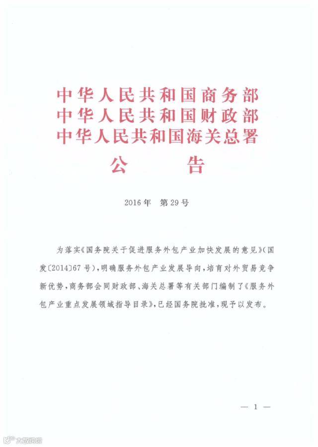 资讯 | 商务部 财政部 海关总署联合编制发布《服务外包产业重点发展领域指导目录》