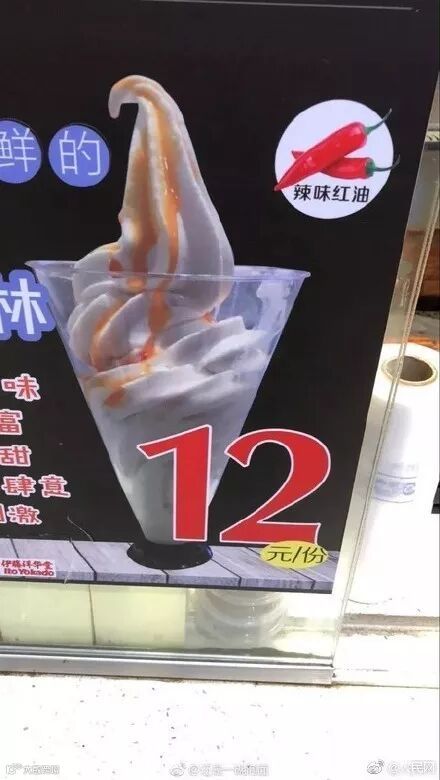 四川一家店推出十级最强黑暗料理——辣味红油冰淇淋