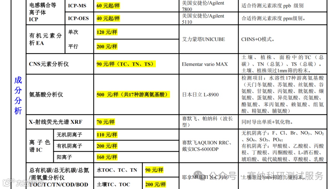 【科研检测项目价格 & 完整分析检测仪器清单】