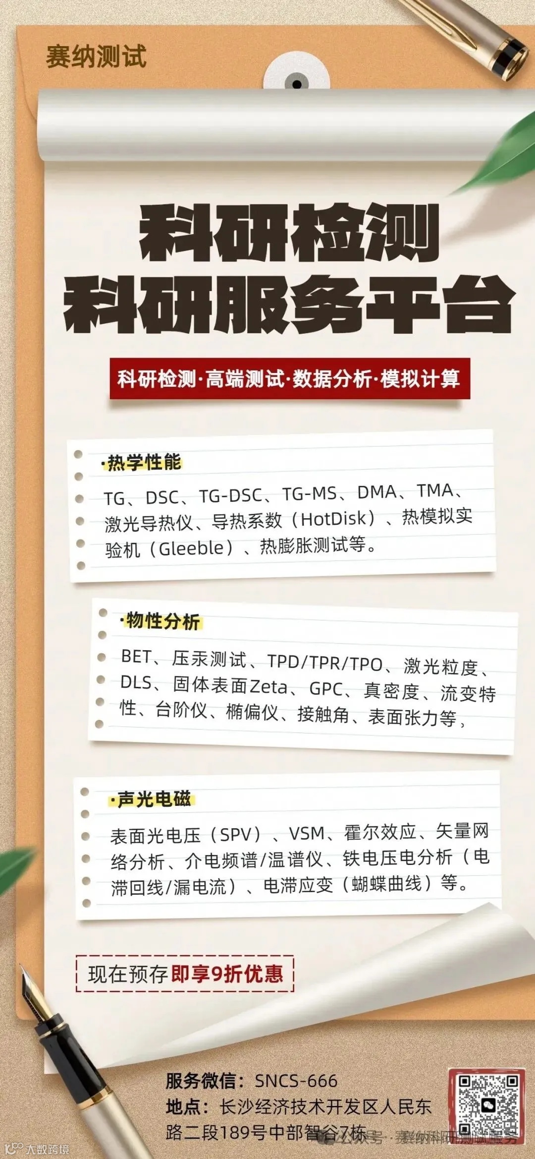 ■免责声明:本公众号致力于服务全体科研人员,分享科研检测相关内容,仅供参考学习。所有转载内容,均不代表『赛纳新材测试服务』赞同其观点和立场,不能完全保证其准确性和真实性。如若本公众号无意侵犯媒体或个人知识产权,请联系删除。