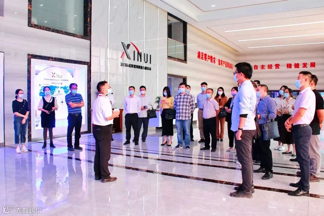 ▲江门鑫辉总经理郭轶夫带领走访团参观展示厅