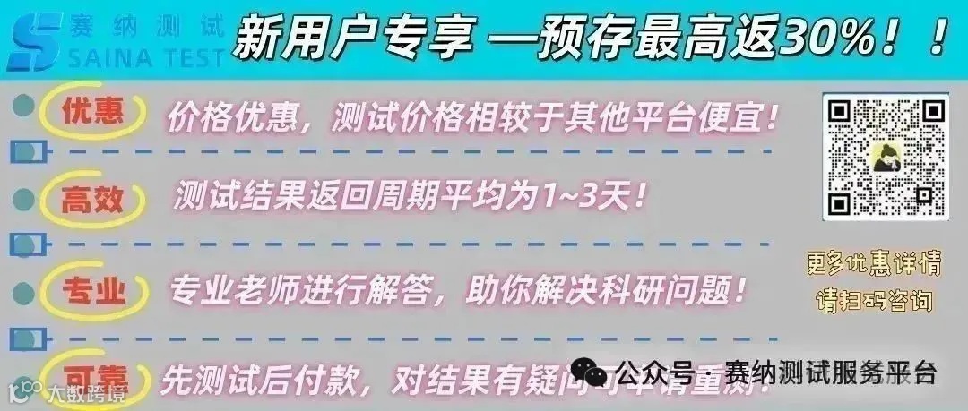 ■免责声明:本公众号致力于服务全体科研人员,分享科研检测相关内容,仅供参考学习。所有转载内容,均不代表『赛纳新材测试服务』赞同其观点和立场,不能完全保证其准确性和真实性。如若本公众号无意侵犯媒体或个人知识产权,请联系删除。