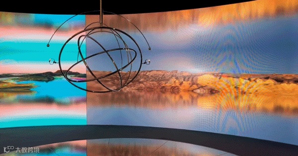 手表是整个布景设计的核心,它围绕地球旋转的卫星,赋予视频风景时间性,并通过雕塑、装置、互动设备、视频映射等技术来完成Hermès旅行的象征性和展示手表的功能性。