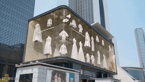 巨幅数字壁画横跨33个大型LED屏幕,三层楼高的商店墙壁,不断变化的幻想景观,融合了中国芙蓉、佛罗伦萨建筑和自然景观的图像,一种超越现在,涵盖过去、传统、地方和文化,以及绘画风格的数字美学,完美地反映了 GUCCI 的精髓,沉浸在丰富的历史中,但始终面向未来。