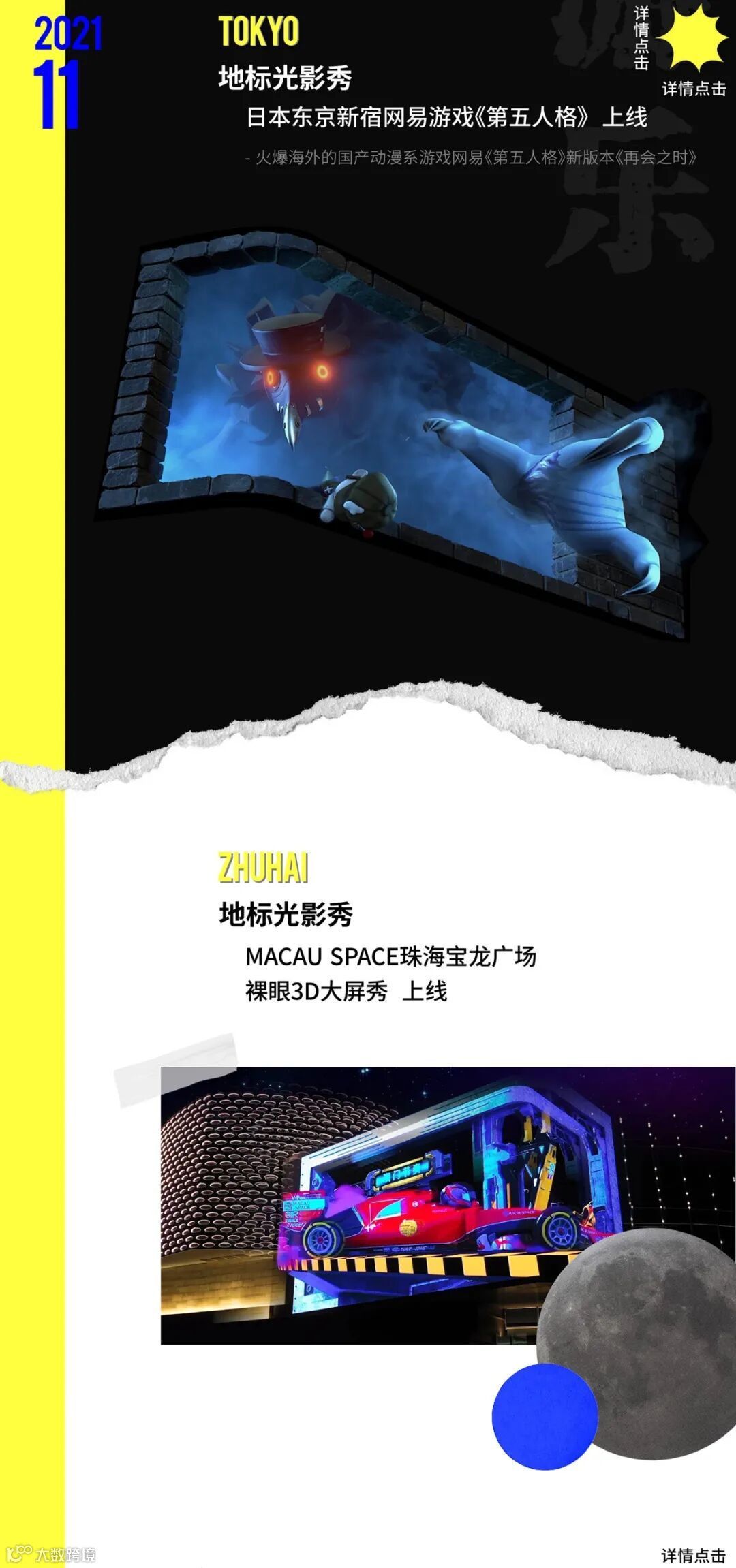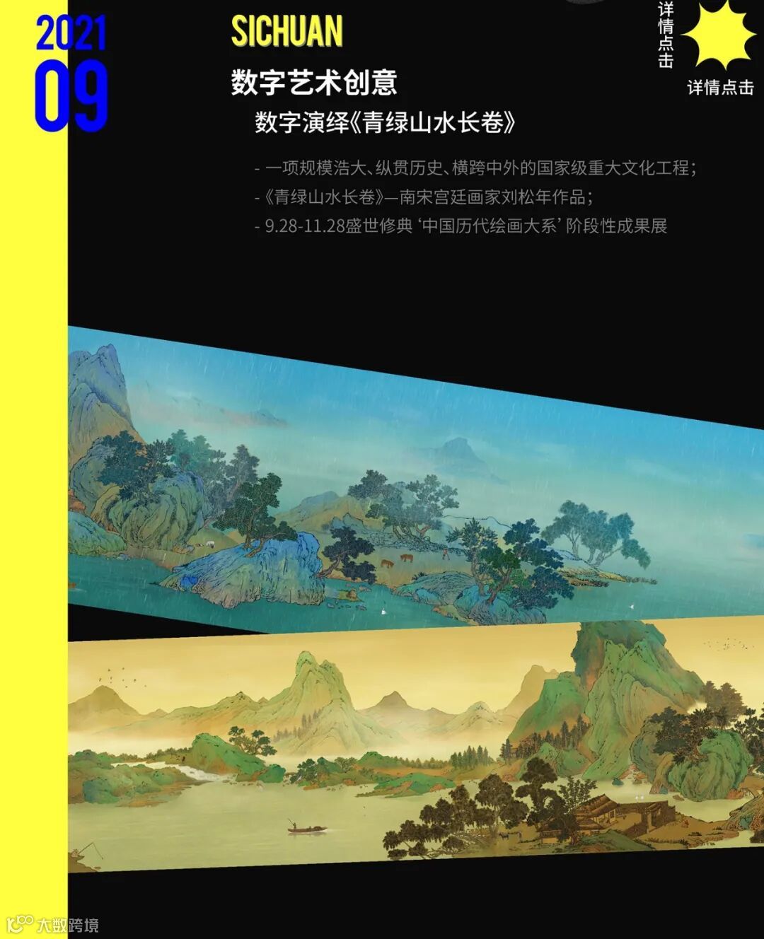 探索数字与创意,链接人文与情感。以“不止于内容,更超越体验”为创作理念。将创意、科技、艺术与文化相结合,通过光影、影像、交互、演艺、造景等,打造沉浸式体验,融合真实与虚拟、自然与数字、激发一系列好奇及链接关系,实现视听有冲击、身体有互动、情感有共鸣,创造难忘的数字创意沉浸式文化体验。