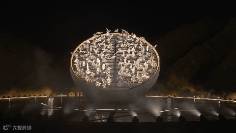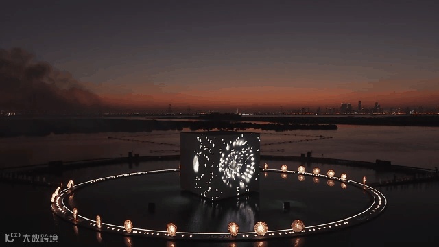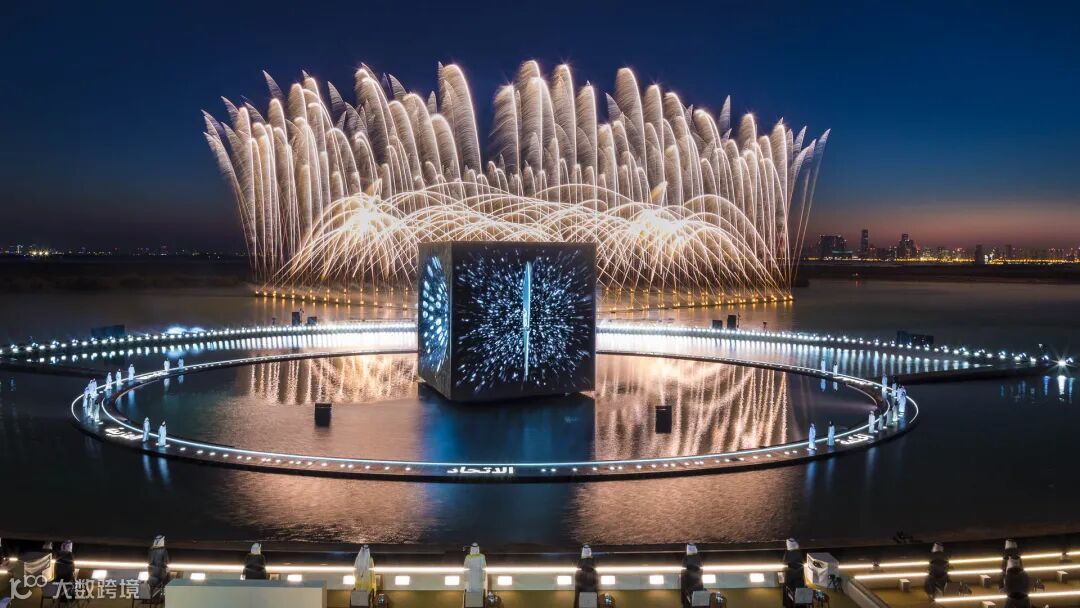 整个演出以水中央一个15米高的旋转立方体雕塑为中心,扮演了叙述者的角色,随着四周被投影的视觉照亮,描绘出受阿联酋历史和价值观所启发的主题。就像是在海中央徐徐展开的画卷。