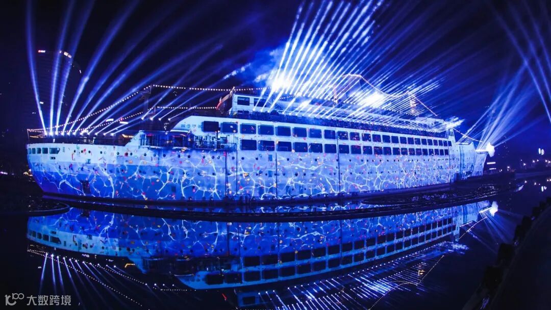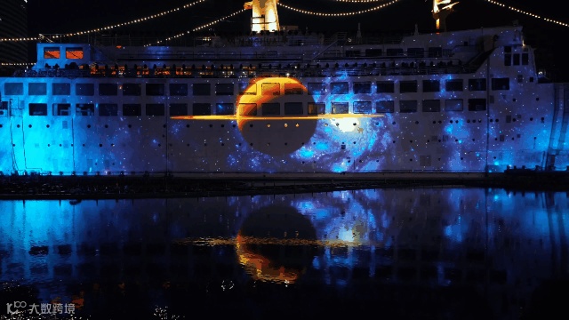 这是国内首创170米超大型轮船体3DMapping灯光光影秀—《未来之光》