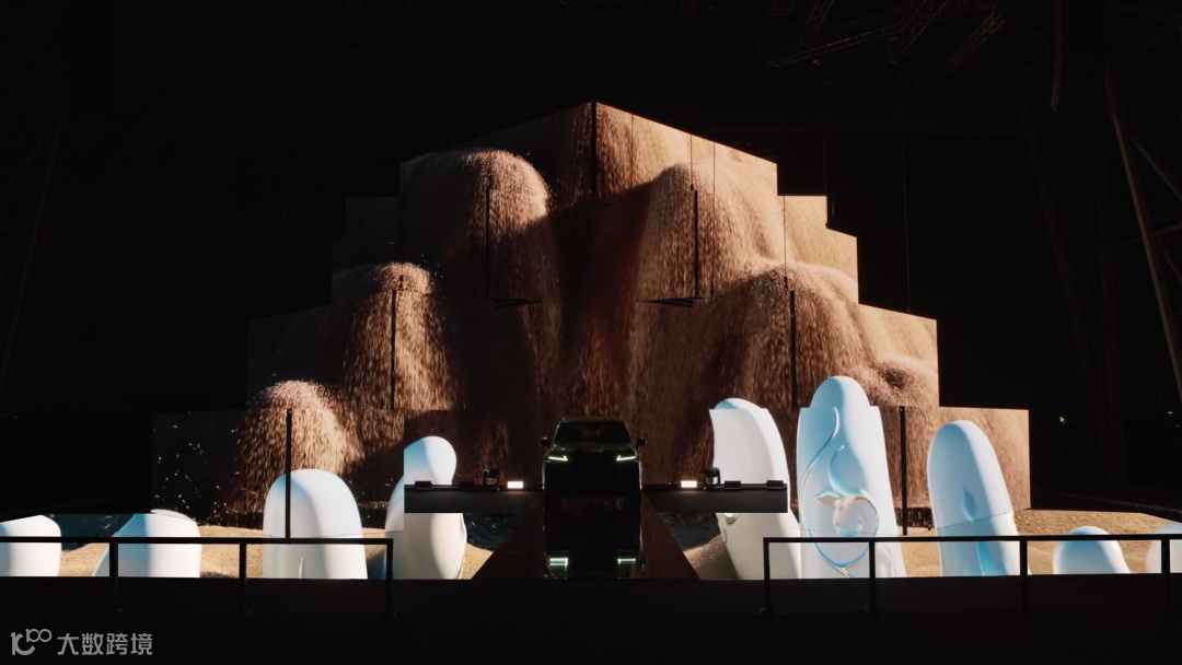 结合沙特当地的元素薰衣草、金字塔、流沙等与现代科技感结合,整个舞台成为一个巨型的艺术装置。以金属简约风为主,自然景观、机械、人像等元素配合矩阵式运动舞台,组合成急剧变化的科技感表演空间。