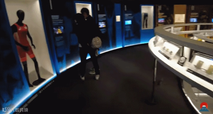 几位演员身穿蓝白色服装,配合道具扮演各项运动标志,通过镜头角度的切换与转场,实现了一镜到底的图标演绎。