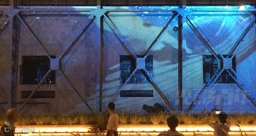 使用2台15000流明激光投影机成像,采用融合去做调整遮罩作用,做到最大减少漏光等现象,配合唯美的动画内容,为“都市绿肺”增添一道光影色调
