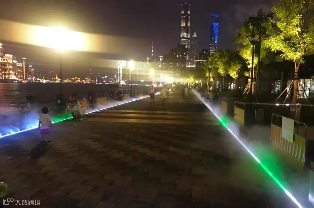 当游客经过过道时,检测系统便开始收集数据,经过电脑的分析配置,再传输到照明系统,让LED洗墙灯的灯光追随着游客的移动轨迹。再配合喷雾降尘系统,仿如一条通往仙境的道路,流光溢彩。