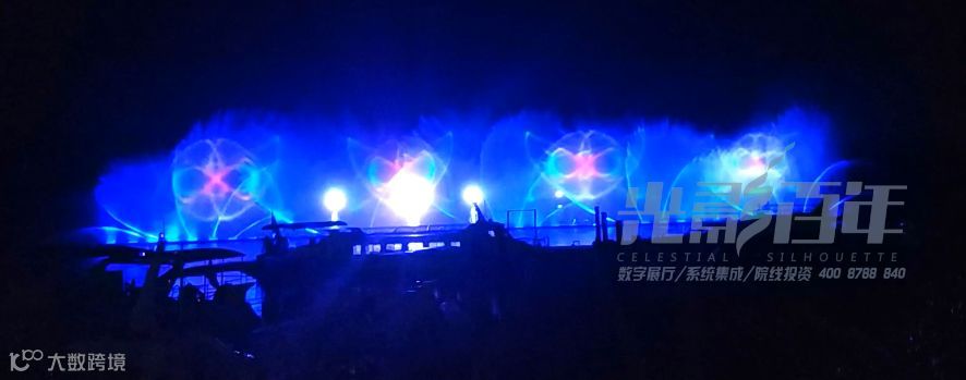 3D投影效果与炫彩激光相互交错,投射在近似透明的水屏幕上,水幕的视觉穿透性可使画面产生较强的立体感,犹如画面漂浮在水面上。