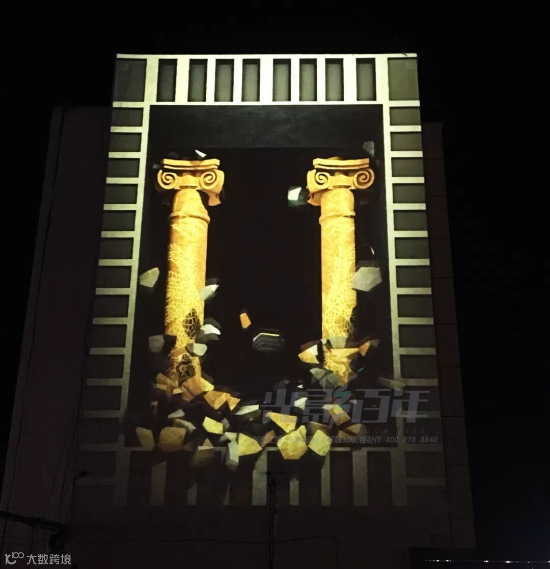 成像面积约200平,外墙亮化采用2台15000流明投影机呈现。