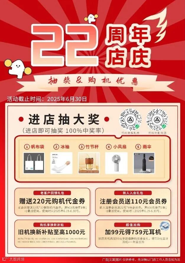 📅 6月19日-6月30日,周年庆狂欢盛宴正式开启,进店抽奖、千元补贴、爆款直降……福利多到炸,错过再等一年!