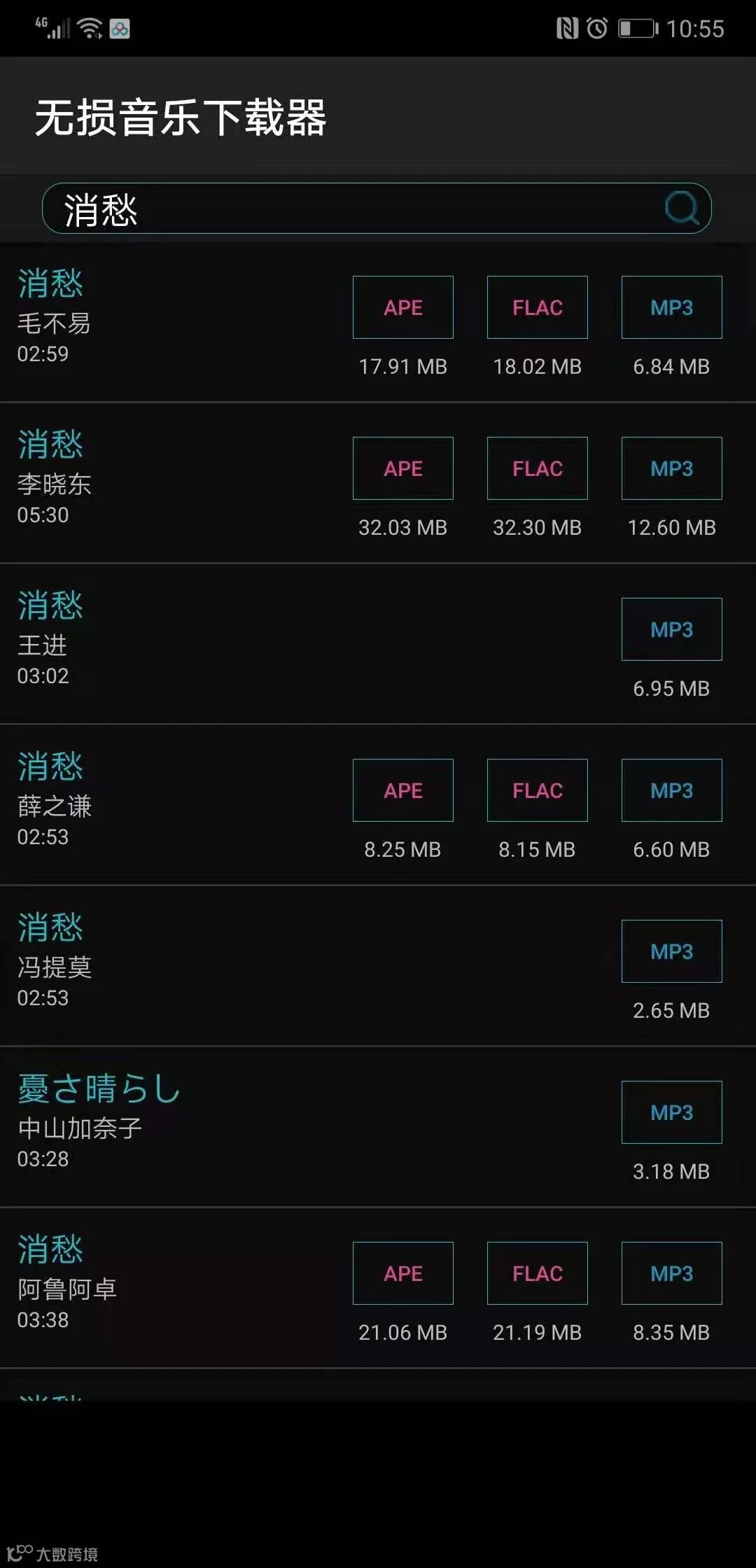 点击搜索 就可以看到我们想要的歌曲 有三种格式,不同音质可以选择