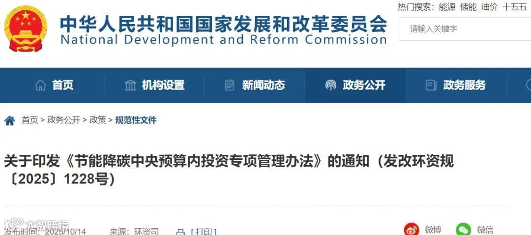 10月14日,国家发改委发布的《节能降碳中央预算内投资专项管理办法》指出,重点行业领域节能降碳项目。支持电力、钢铁、有色、建材、石化、化工、机械等重点行业节能降碳改造。支持以工业园区、产业集群为载体整体部署并规模化实施的节能降碳改造。支持供热、算力等基础设施节能降碳改造。支持中央和国家机关节能降碳改造。煤炭消费清洁替代项目。支持煤电机组和煤化工项目低碳化改造。支持食品、烟草、纺织、造纸、印染等行业燃煤锅炉、工业窑炉,实施清洁能源替代。支持城乡居民采用地热能、生物质能供暖。