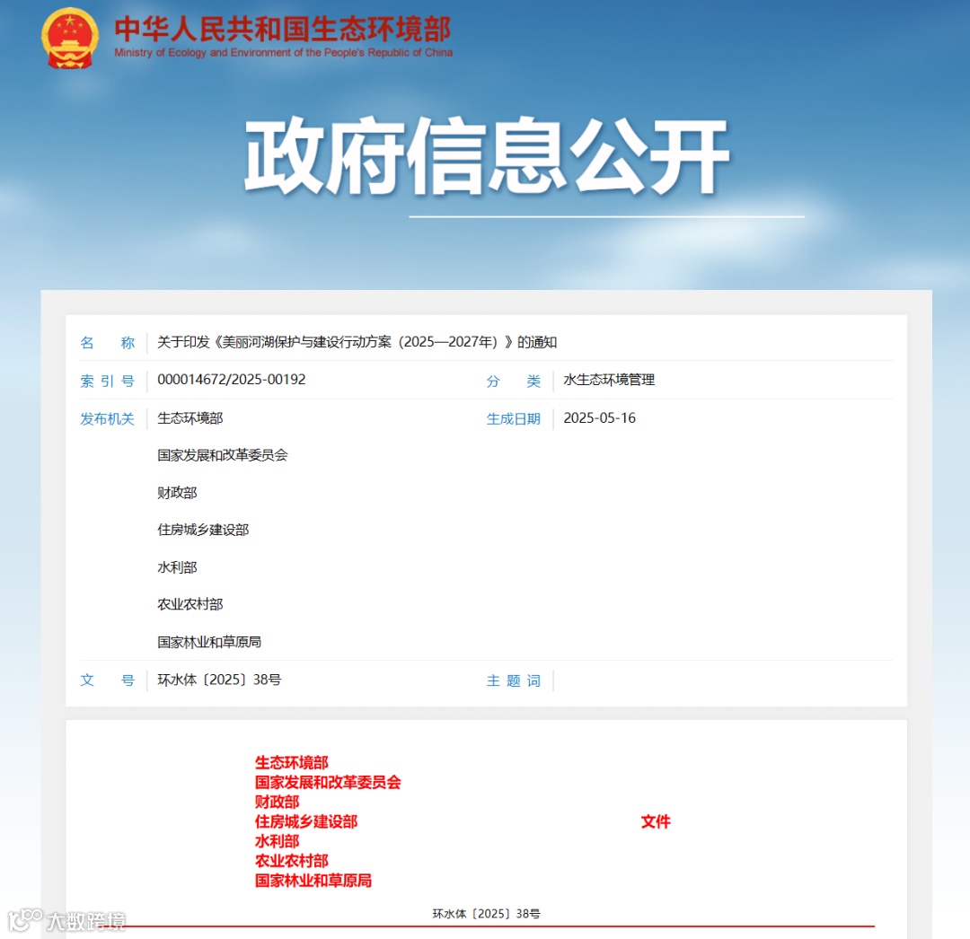 关于印发《美丽河湖保护与建设行动方案(2025—2027年)》的通知