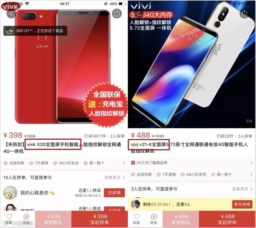 vivo的山寨花样更是多,更换vivo的某个字母,比如:vivk、vivi、vjvj等千花百样,稍不留神就会看错以为自己购买了vivo的真机。