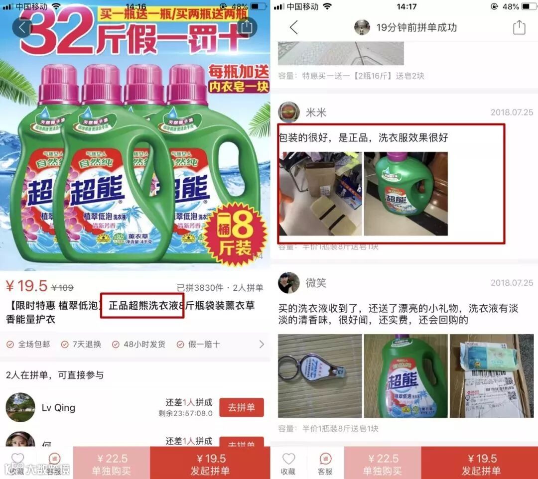 拼多多的“超熊洗衣液”有用户下单收货后也依旧没发现不是“超能”。
