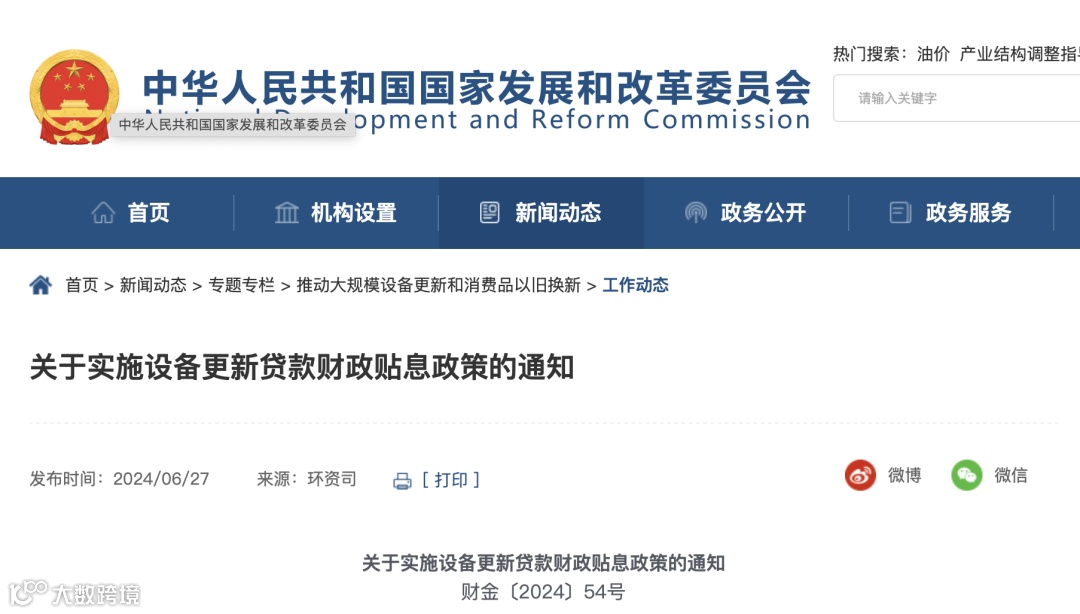 近日,财政部、国家发展改革委、中国人民银行、金融监管总局联合发布通知,明确中央财政会同有关方面实施设备更新贷款财政贴息政策。