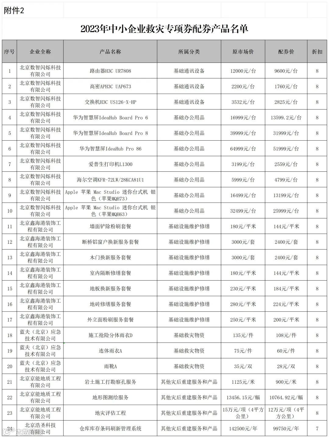 为深入贯彻党中央、国务院关于促进中小企业健康发展的决策部署,贯彻落实《北京市促进中小企业发展条例》,我局组织开展了北京市2023年度中小企业服务券配券产品和中小企业救灾专项券配券产品征集工作。经申报、评审、网上公示等程序,现将2023年度北京市中小企业服务券配券产品和中小企业救灾专项券配券产品名单予以公告。