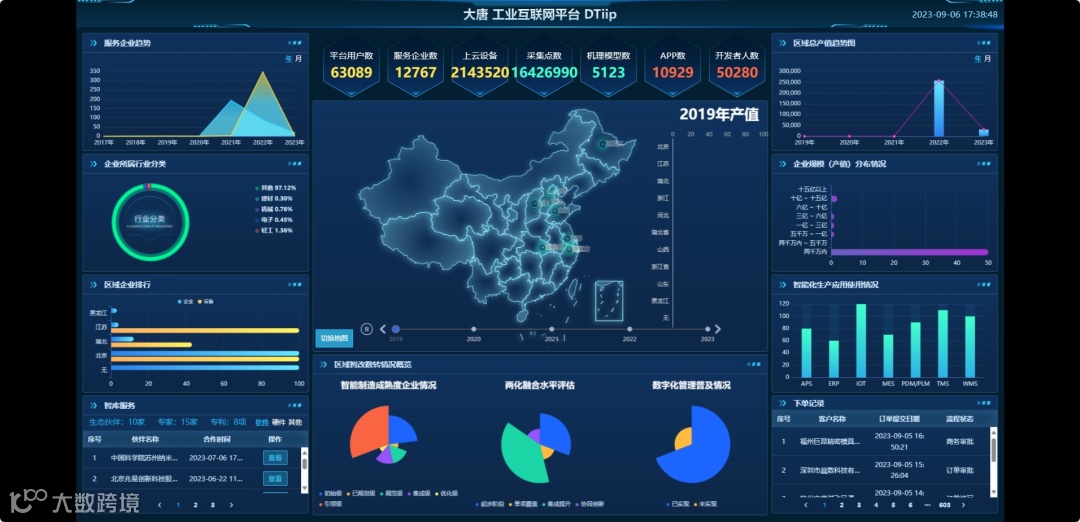 “DTiip工业互联网平台”具备“二全、四高、一创新”特点。其中“两全”指:芯、端、边、网、云、智、安的全技术栈以及研、产、供、销、服的全产业链应用;“四高”指:高并发、高可靠、高稳定性、高度可配置性;“一创新”指多租户多级运营技术创新模式。目前,“DTiip工业互联网平台”产品与解决方案已覆盖17个行业、9大领域,提供超过百余个解决方案,已成为拥有多行业、多领域服务能力的综合工业互联网服务平台,尤其在电子、轻工、汽车、环保、应急、医药行业取得了良好的成效。