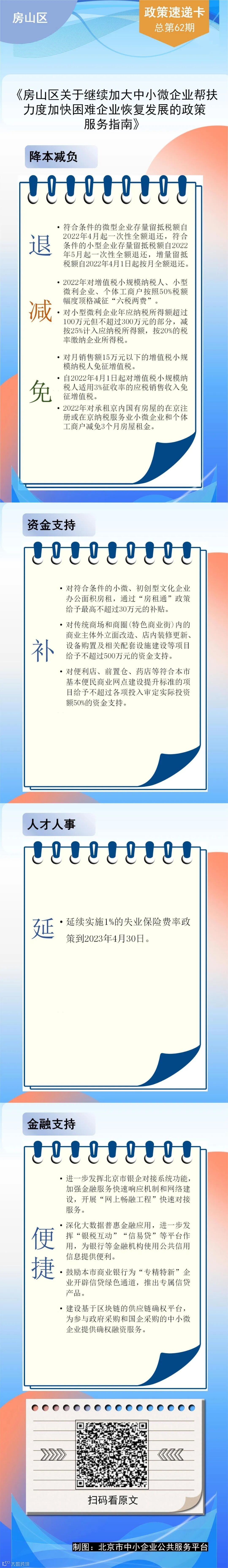 政策速递卡 | @中小微企业 房山区助企纾困政策(第一期)来了 北京中小企业服务平台