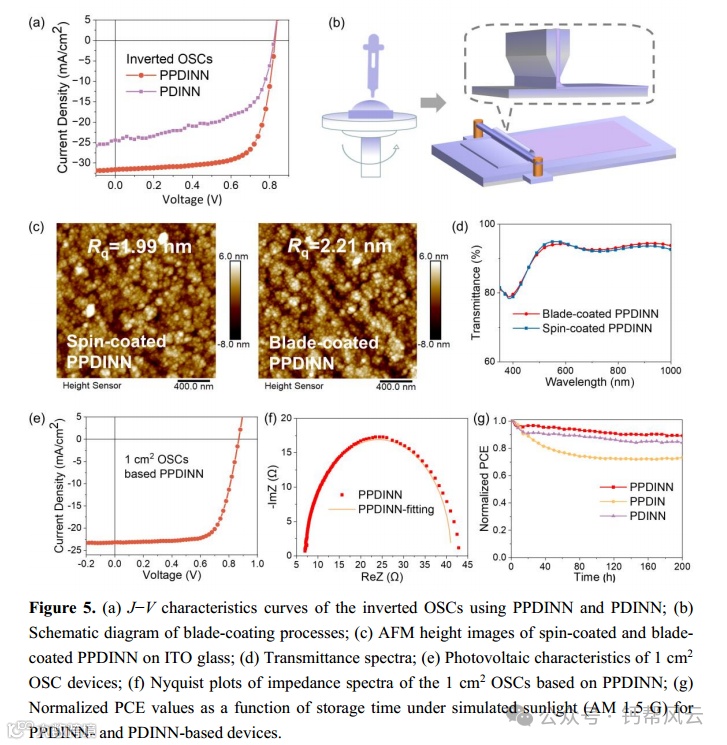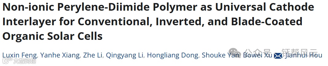 作为有机太阳能电池(OSCs)中主要使用的阴极中间层(CILs),苝-二亚胺(PDI)基聚合物具有优异的电荷传输能力和合适的能级。尽管如此,具有良好成膜能力和耐溶剂性的PDI基CILs非常罕见,这不仅限制了OSCs性能的进一步提高,也阻碍了PDI CILs的实际应用。在此,我们设计并合成了两种非共轭PDI聚合物,用于在不同类型的OSCs中实现高功率转换效率(PCE)。低聚乙二醇(OEG)键的使用增强了PDI聚合物的非掺杂效应,从而提高了CIL降低功函数和提高电子传递能力的能力。此外,非离子OEG链的引入有效地改善了PDI聚合物的润湿性能和耐溶剂性。因此,PPDINN CIL可以承受制造不同OSCs的各种加工条件,包括常规,倒置和叶片涂层器件。采用PPDINN CIL制备的具有传统结构的二元OSC的PCE为18.6%,同时器件稳定性也有所提高。此外,PPDINN与大面积叶片涂层技术兼容,在1 cm2的OSC中,使用叶片涂层PPDINN的PCE达到16.6%。