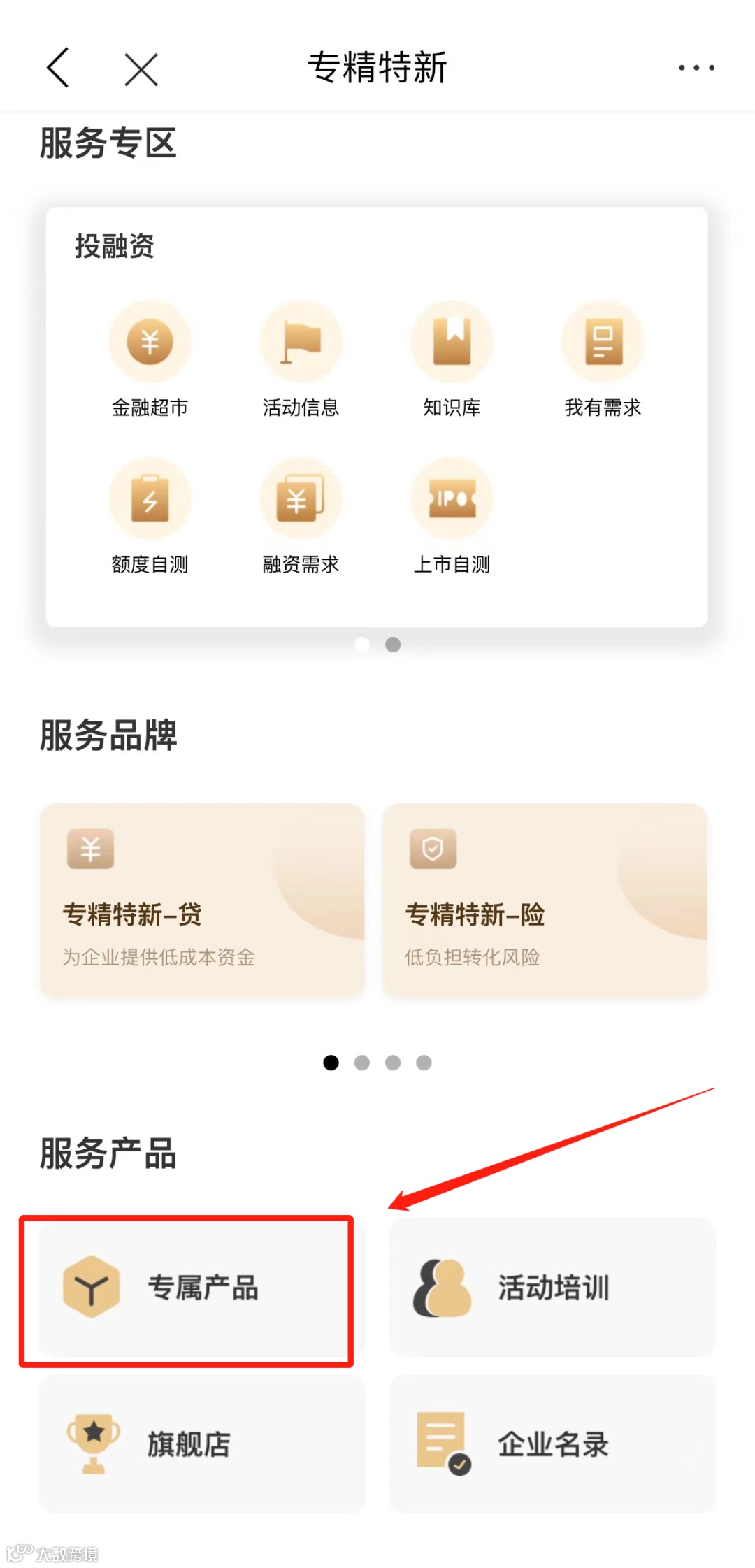 2.进入专精特新专区—专属产品,即可查看“享补贴”、“限时免费”的服务产品。