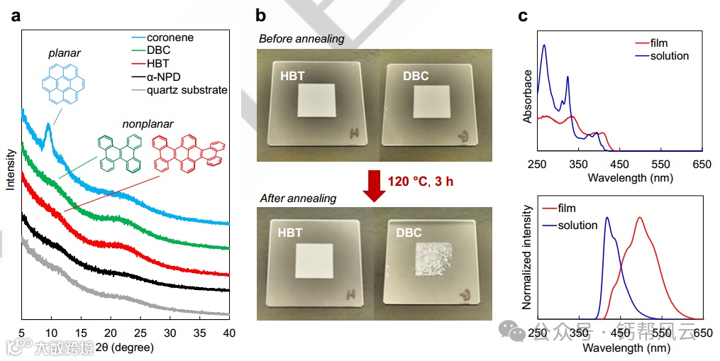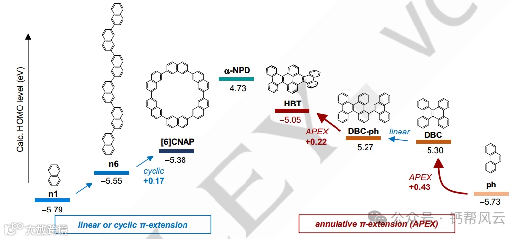 空穴传输材料(HTMs)是光电器件必不可少的材料,如有机发光二极管(OLED)、染料敏化太阳能电池和钙钛矿太阳能电池。自1987年引入以来,三芳胺一直被用作HTM。然而,杂原子或侧链嵌入三芳胺的核心骨架会引起热稳定性和化学稳定性问题。在此,我们报道了六苯并[a,c,fg,j,l,op]四烯(HBT),一种小的非平面纳米石墨烯,作为碳氢化合物HTM,具有与三芳胺基HTM相匹配的空穴传输特性。X射线结构分析和理论计算揭示了HBT有效的多向轨道相互作用和转移积分。深入的实验和理论分析表明,非平面诱导的环形π扩展不仅可以在体膜中获得稳定的非晶态,而且比常规的线性或循环π扩展具有更高的最高占据分子轨道水平的增加。此外,与代表性的三芳胺基OLED相比,内部制造的基于HBT的OLED表现出优异的性能,具有电流密度-电压,外部量子效率-亮度和寿命的优越曲线。基于HBT的OLED器件寿命显著提高,突出了碳氢化合物HTM的优势。这项研究证明了小型非平面纳米石墨烯在光电器件应用中的巨大潜力。