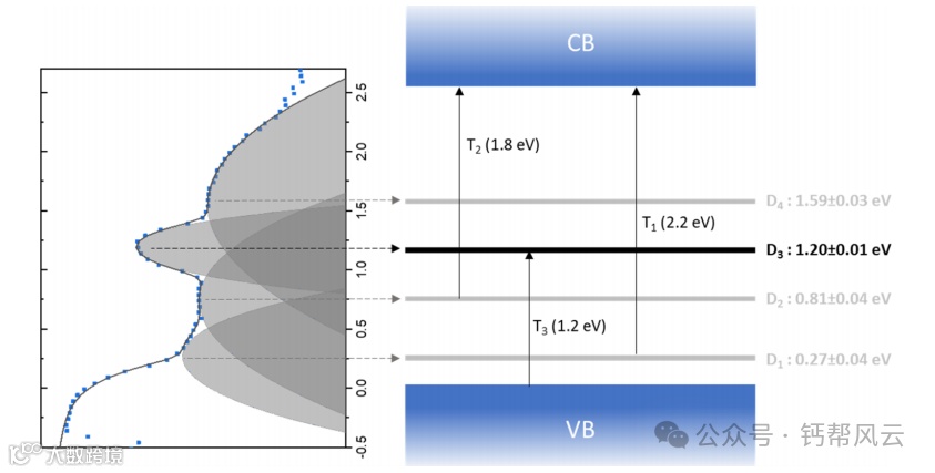 了解Ruddlesden - Popper二维金属卤化物杂化钙钛矿(2D HaPs)的亚带隙发光对于光电器件中有效的电荷注入和收集至关重要。尽管如此,关于自捕获激子的作用或通过缺陷态的辐射重组,它的起源仍在争论中。在这项研究中,我们表征了单晶、剥离层和多晶碘化铅丁铵(BA2PbI4)薄膜中的电荷分离、重组和输运。我们结合互补的缺陷和激子敏感方法,如光致发光(PL)光谱、调制和时间分辨表面光电压(SPV)光谱、恒定终态光电子产率光谱(CFSYS)和恒定光致磁输运(CLIMAT),证明了激子解离引起的电荷分离与从缺陷态激发移动电荷载流子引起的电荷分离之间的显著差异。我们的研究结果表明,BA2PbI4和其他二维HaPs的宽亚带隙发射是由缺陷态(浅和中隙态)的辐射重组引起的,而不是由自捕获激子引起的。密度泛函理论(DFT)结果表明,常见的缺陷可以很容易地发生,并产生与实验结果很吻合的能量分布。DFT结果表明,碘间隙的形成是导致降解的初始过程,是导致中隙态出现的原因,缺陷工程将在未来增强2D HaPs的光电性能方面发挥关键作用。
