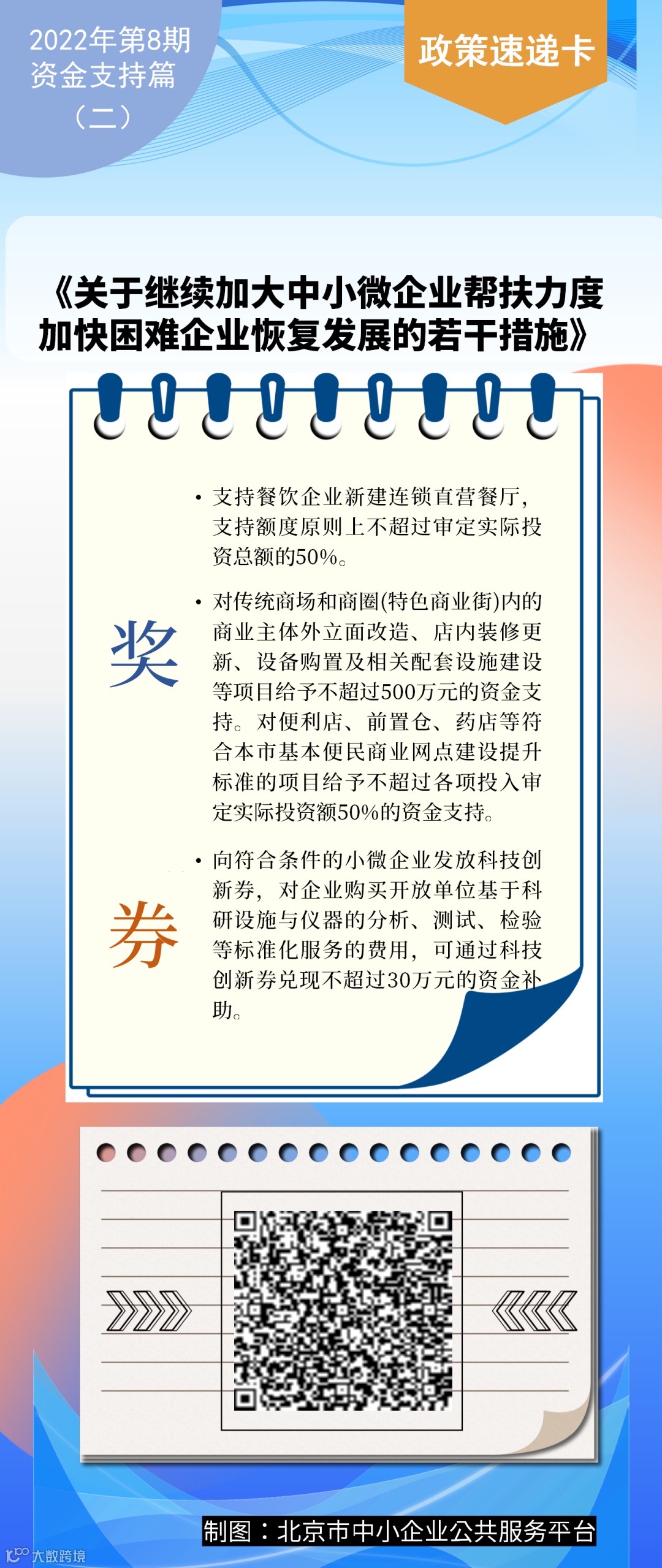 政策速递卡 | @中小微企业 资金支持 促企发展政策(第二期)来了! 北京中小企业服务平台