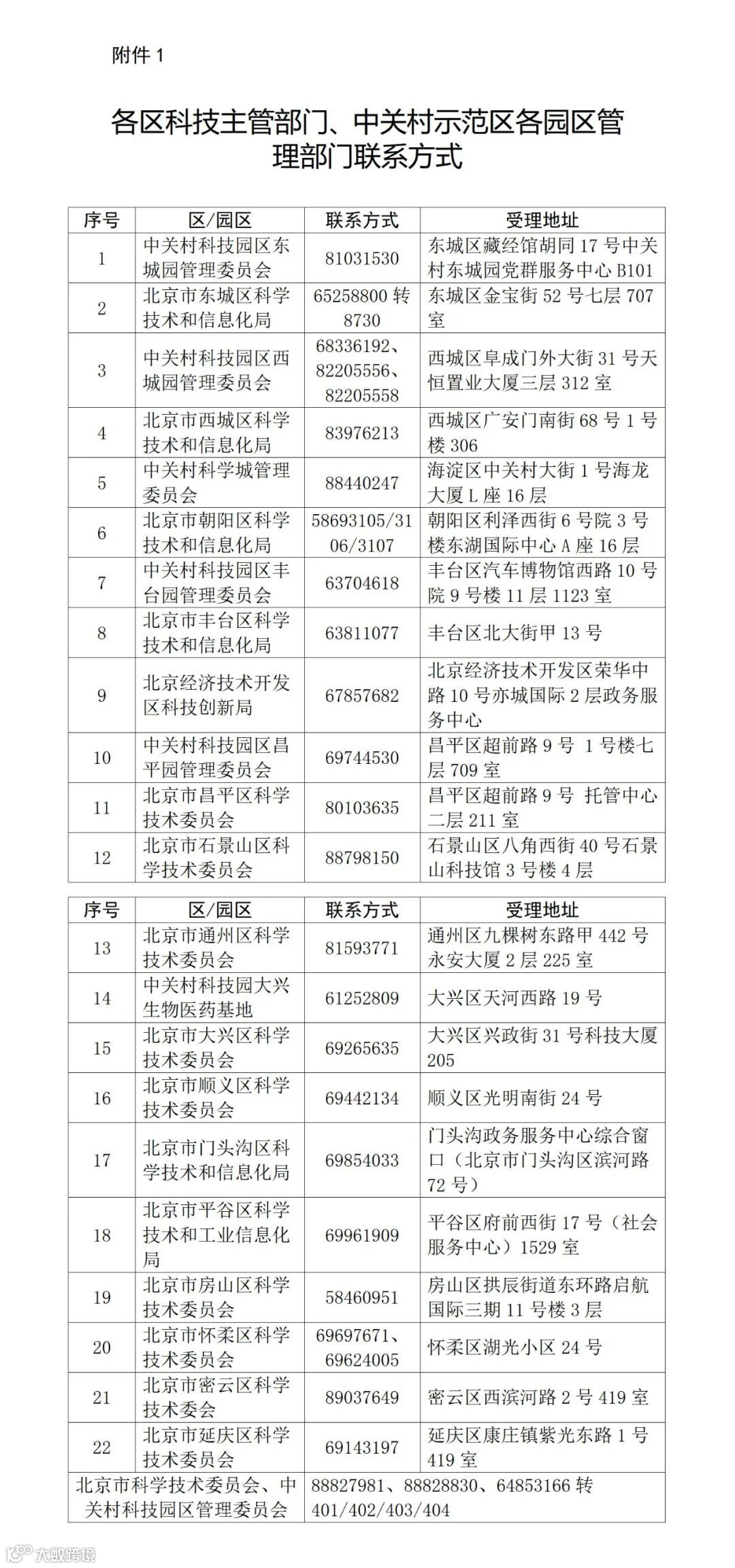 各区科技主管部门和中关村示范区各园区管理部门负责各自辖区内申报受理工作(联系方式详见附件1)。其中北京经济技术开发区科技创新局负责受理亦庄新城区域内高新技术企业认定申报材料,范围包括:现阶段北京经济技术开发区范围、综合配套服务区(旧宫镇、瀛海地区、亦庄地区)、台湖高端总部基地、光机电一体化基地、马驹桥镇区、物流基地、金桥科技产业基地以及长子营、青云店、采育镇工业园。