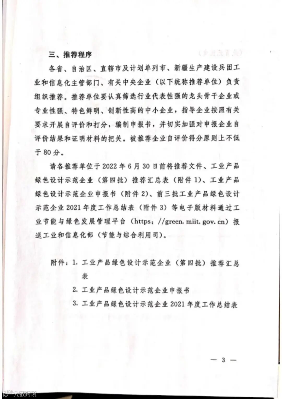 附件:工业和信息化部办公厅关于组织推荐第四批工业产品绿色设计示范企业的通知