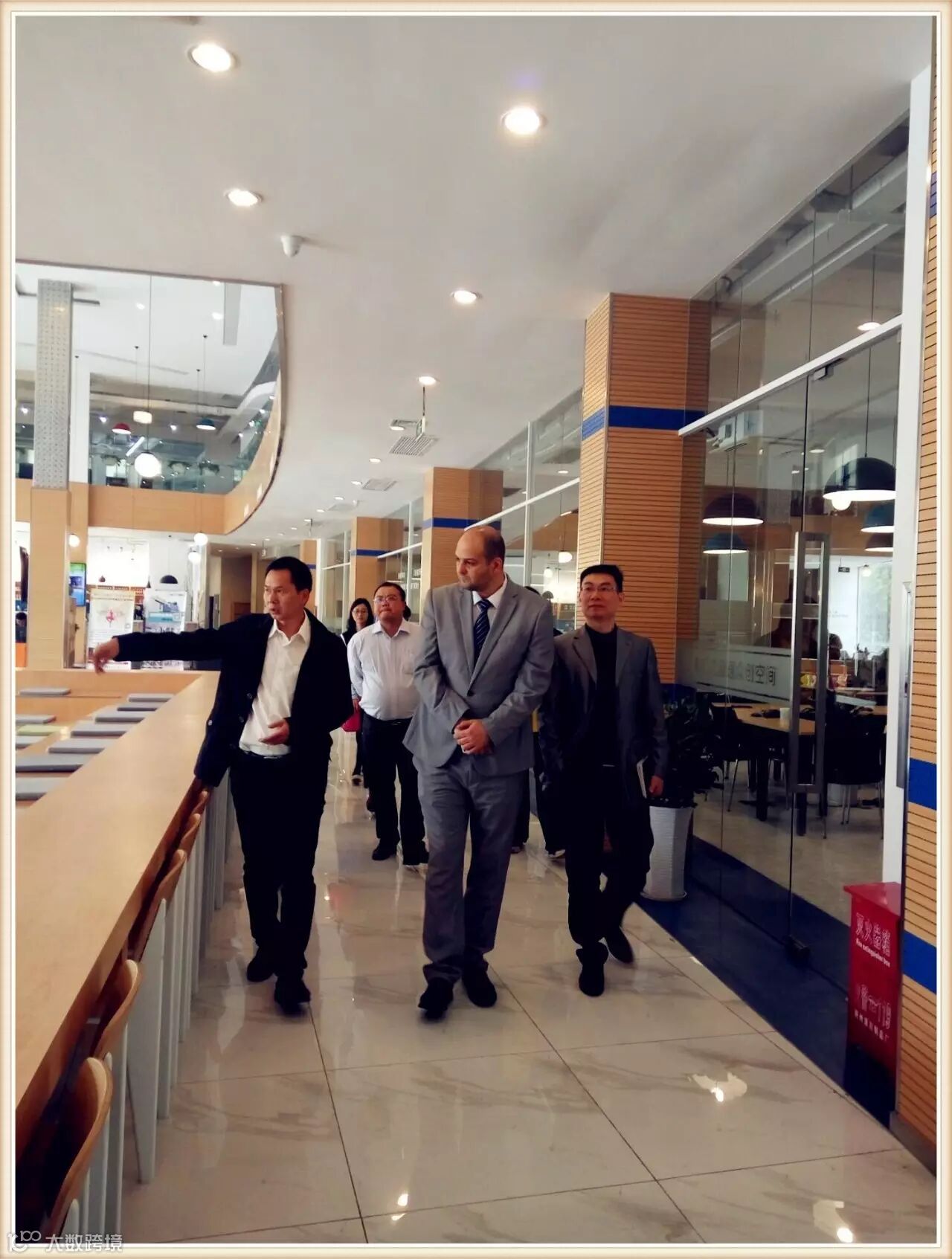 在参观过程中,纳赛尔教授对荆门九派通众创空间的设计布局和多功能开放性的办公区进行咨询了解,并详细询问空间的服务支持。