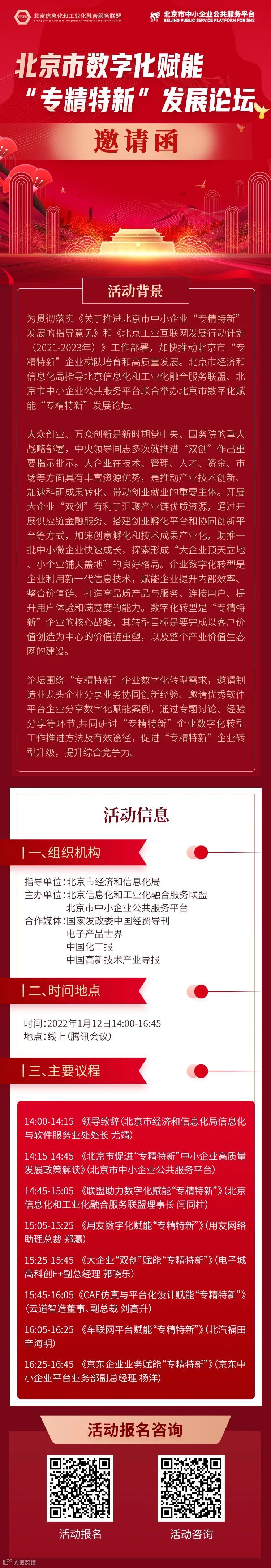 专精特新| 北京市数字化赋能“专精特新”发展论坛邀请函