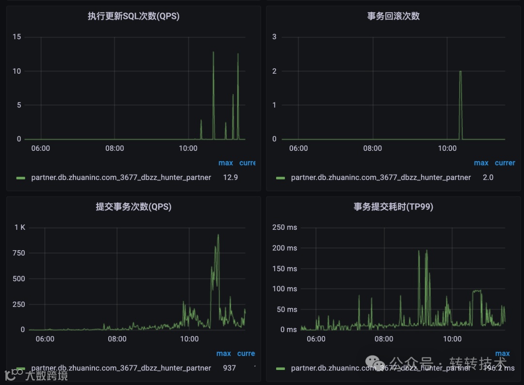 1.通过观察事务提交耗时指标,可以清晰的观察到是否存在大量打大事务,影响数据库连接池的连接和释放。