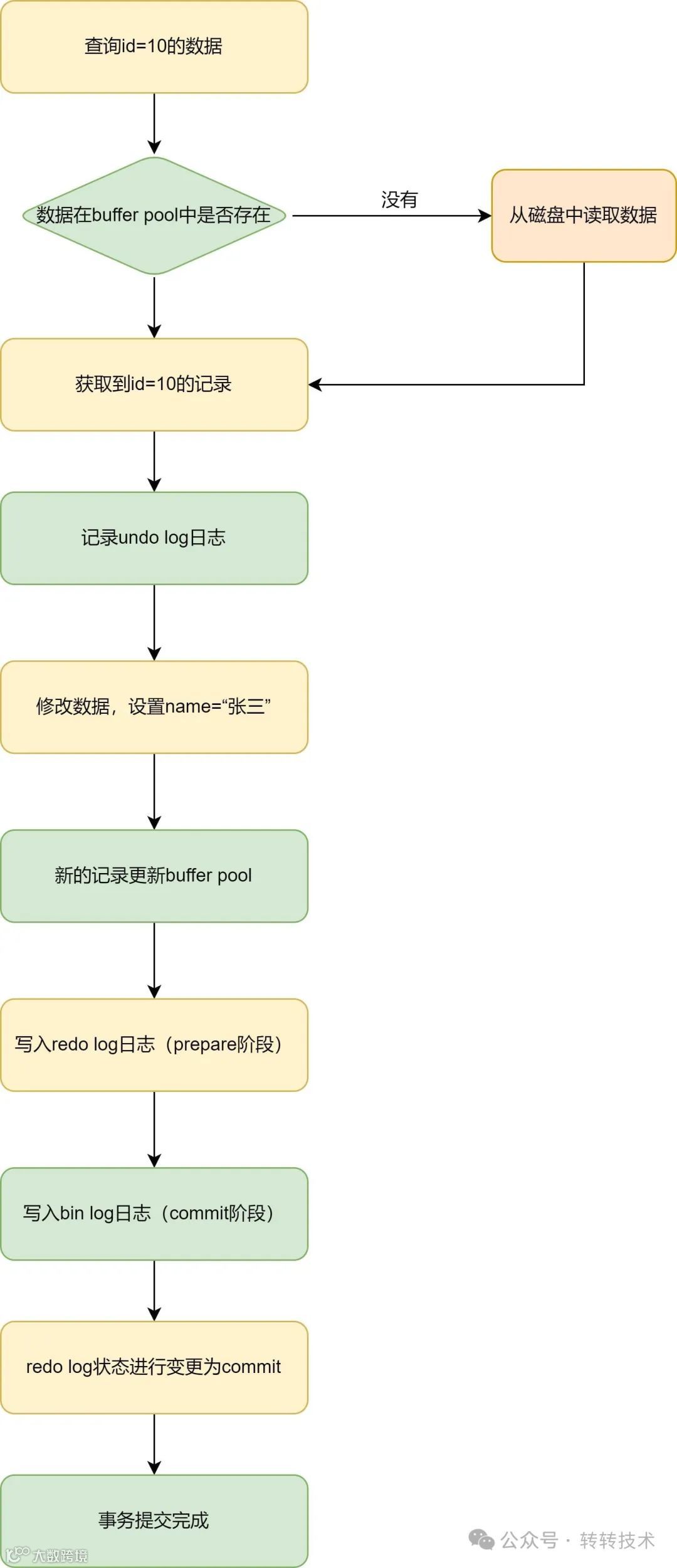 以上就是修改语句的全部流程,可以看到,上图中涉及刷盘的操作本初没有详细讲解,接下来,将结合三大日志,详细讲解刷盘相关操作。