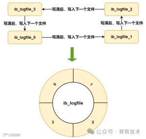 Redo Log采用固定大小并循环写入的方式,类似环形缓冲区。当日志文件写满时,会从头开始覆盖之前的内容。这样的设计是因为Redo Log记录的是数据页的修改,而一旦Buffer Pool中的数据页被刷写到磁盘,之前的Redo Log记录就不在有效。新的日志会覆盖这些过时的记录。此外,硬盘上的Redo Log文件并非单一存在,而是以文件组的形式存储,每个文件的大小都相同。