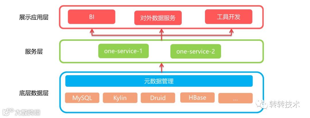 需要支持常用的OLTP与OLAP数据存储引擎,比如MySQL、Kylin、Druid、Clickhouse、StarRocks等,所有数据出口由同一套查询服务支持,并且需要保证服务的可控、稳定、安全,对接BI需求、数据服务、数据应用工具开发等上层各类数据应用场景。