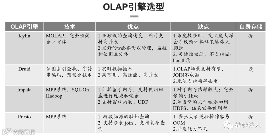 转转对OLAP引擎选型考量有三个方面:性能,灵活性,复杂性。