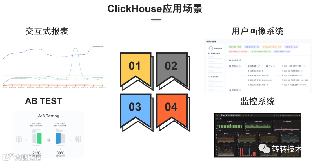 AB测试:利用ClickHouse的高效存储和它提供的一些自带的函数,如grouparray函数,可以做到秒级给出AB实验的效果数据。 -