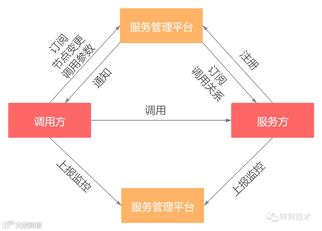 转转服务管理平台是集服务注册与发现、配置中心、监控中心、报警、鉴权&限流于一体的综合性服务治理平台,rpc框架与服务管理平台通过sdk进行交互。