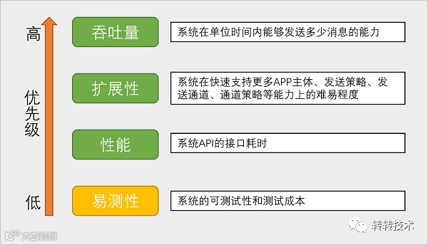 扩展性:指系统在快速支持更多APP主体、发送策略、发送通道、通道策略等能力上的难易程度。 -