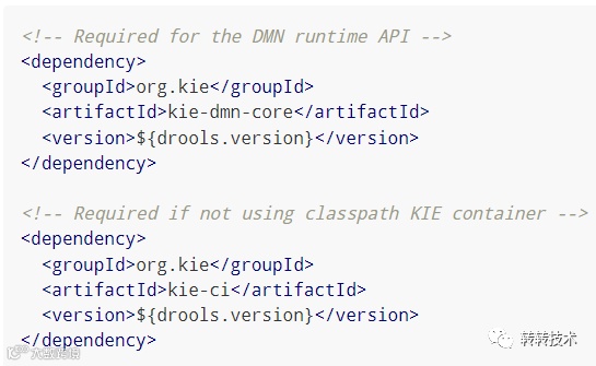 由于Kie容器使用maven作为读取DMN配置的手段,所以要求DMN规则内容需要打包到Kie容器能够识别的jar包里,并且部署到项目可访问的maven环境中。