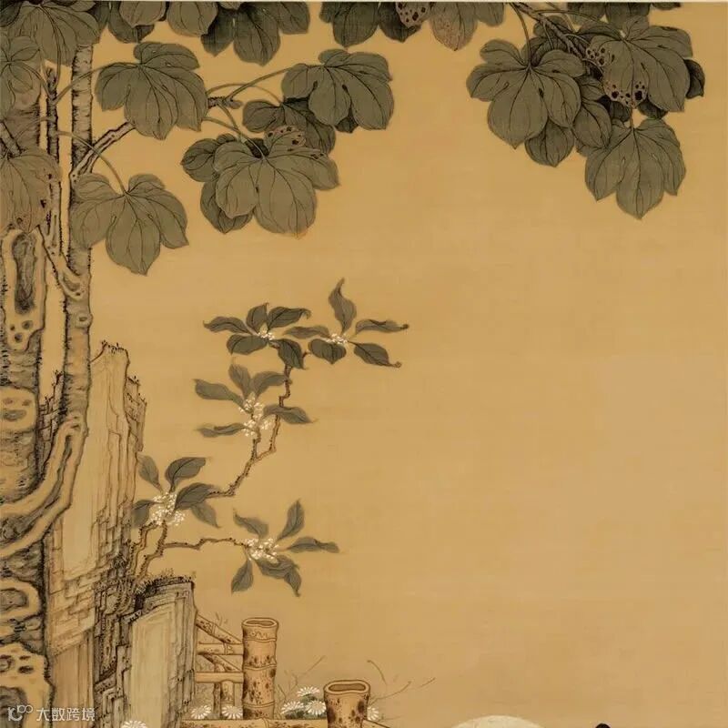 以故宫博物院清代冷枚《梧桐双兔图》轴