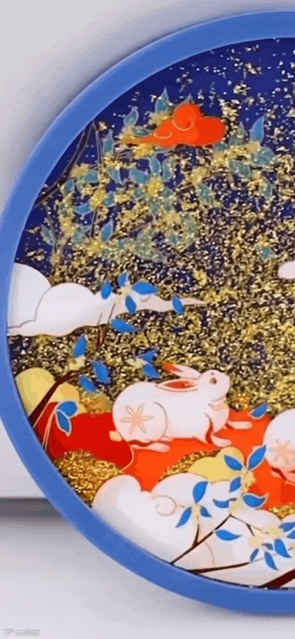 前景为玉兔、祥云、桂花、角楼,