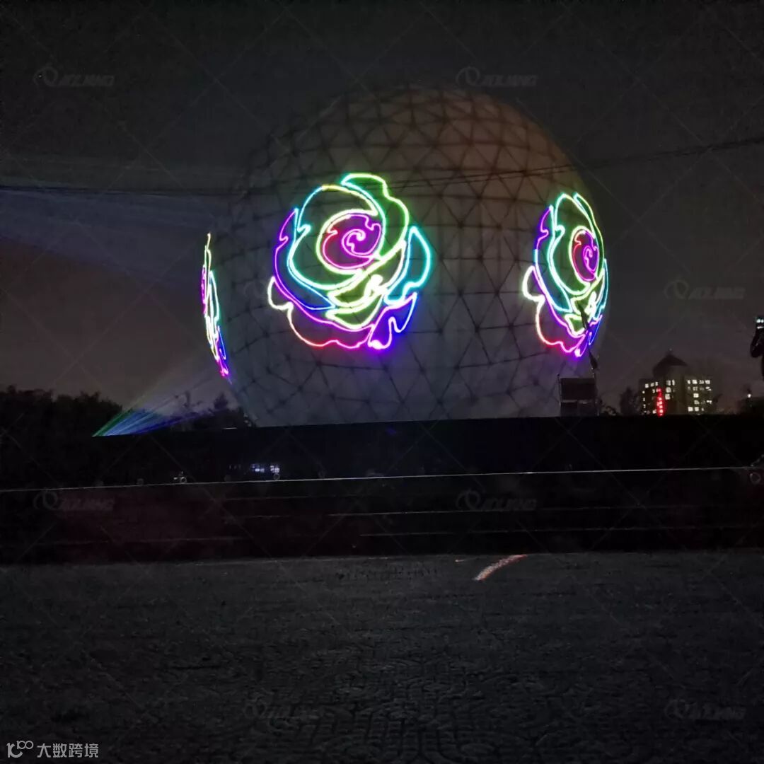 在实际应用中,360度全景激光动画投影是以人眼为中心点,水平360度无缝拼接的动画投射方式。