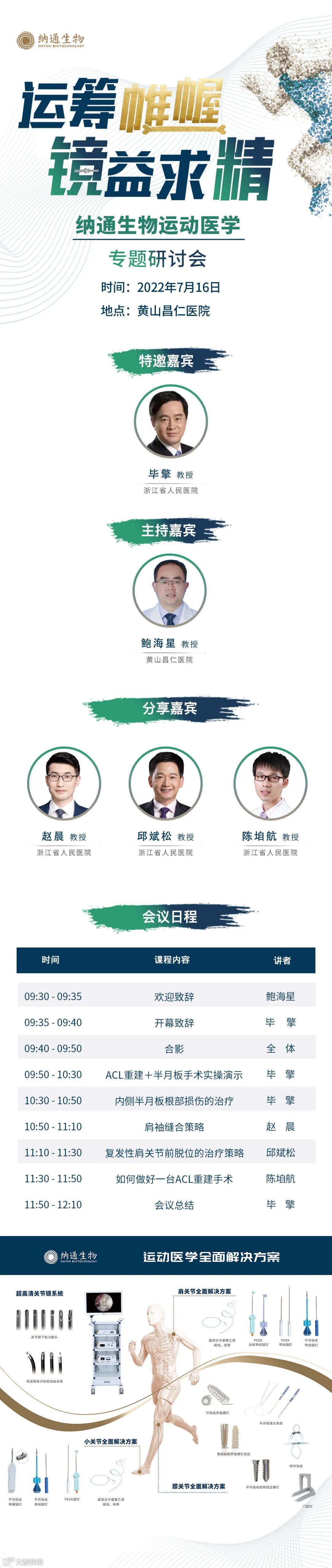 导读:【7月16日】 | 毕擎教授与您相约纳通生物运动医学专题研讨会