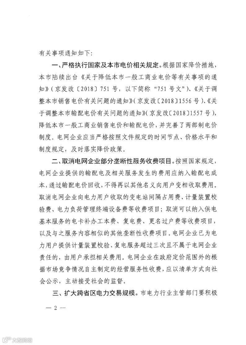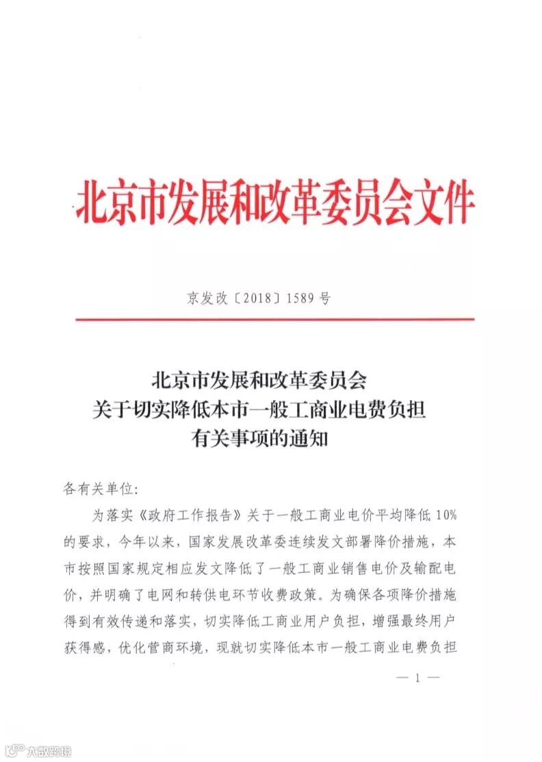8月1日,北京市发改委对外发布了关于切实降低本市一般工商业电费负担有关事项的通知,具体内容如下。